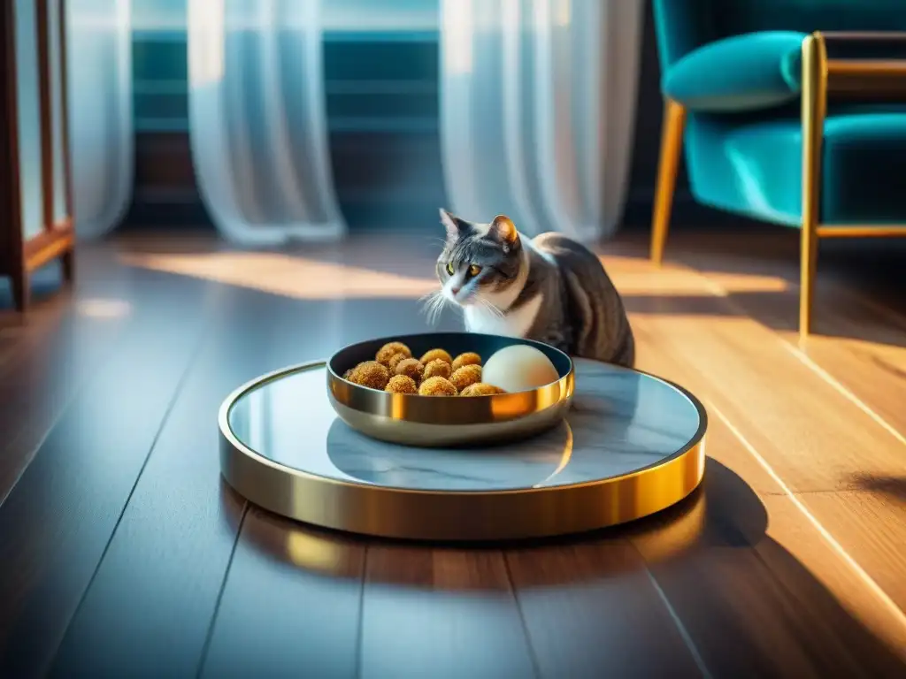 Un elegante rincón de cocina con accesorios de lujo para mascotas y alimentación saludable